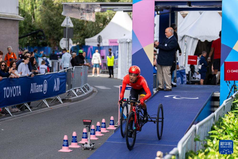 當日,在巴黎殘奧會公路自行車男子個人計時賽T1-2級比賽中,中國選手陳健新以21分35秒78的成績奪得冠軍。