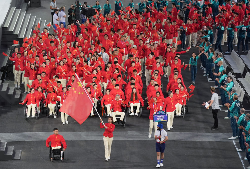 ↑8月28日,中國體育代表團在第17屆夏季殘疾人奧林匹克運動會開幕式上入場。新華社記者 才揚攝