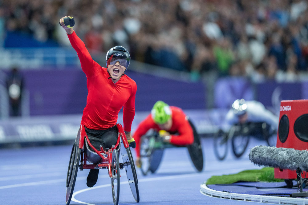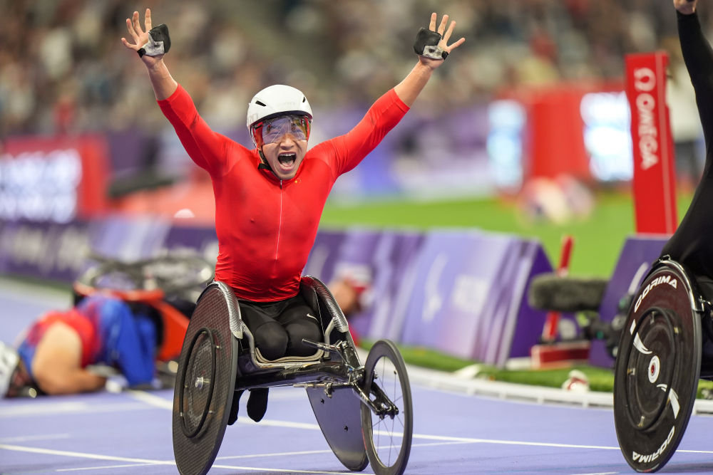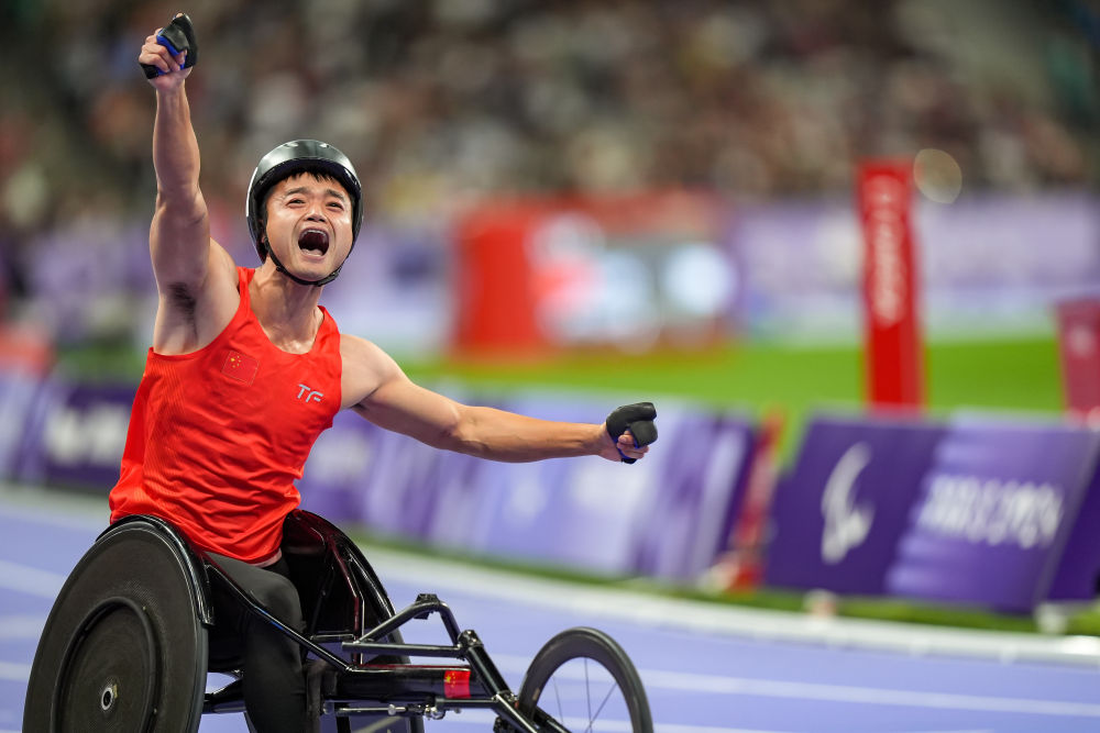 ↑9月5日,中國選手金華在田徑男子800米T54級決賽中奪冠,并打破殘奧會紀錄。新華社記者 黃偉 攝