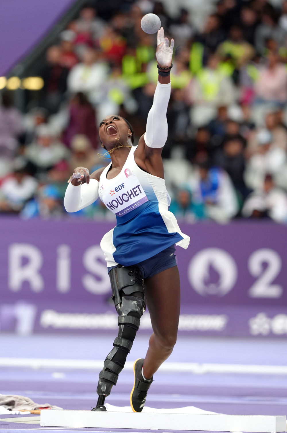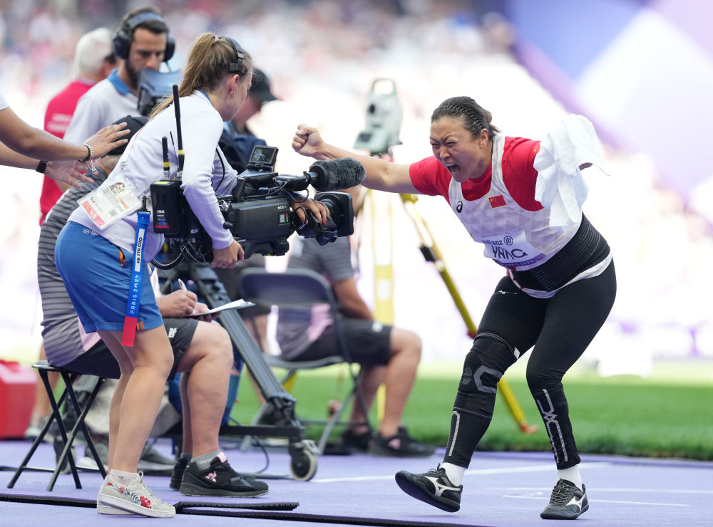 ↑9月5日,法國選手努謝在田徑女子鉛球F64級決賽中。新華社記者 才揚 攝