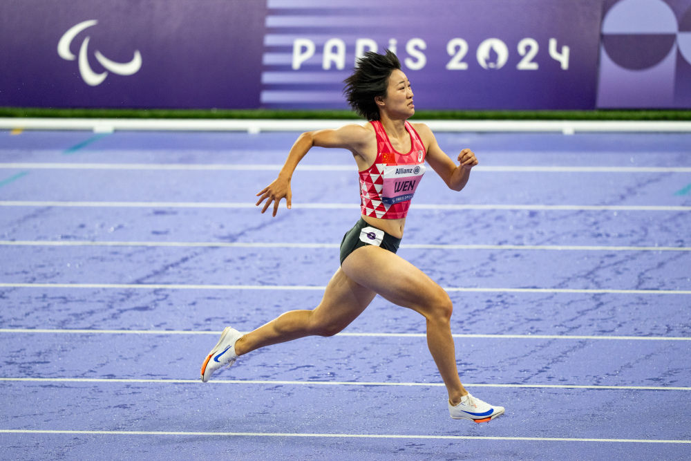 ↑8月30日,中國選手文曉燕在田徑女子200米T37級決賽中以25秒86的成績獲得冠軍,并打破殘奧會紀錄。新華社記者 黃偉攝