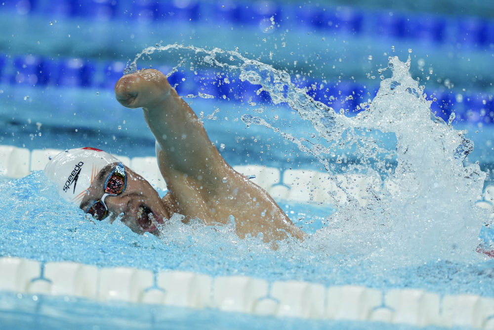 ↑8月30日,中國選手楊洪在男子200米個人混合游SM6級決賽中,以2分37秒31的成績打破世界紀錄獲得冠軍。 新華社記者 張豪夫 攝