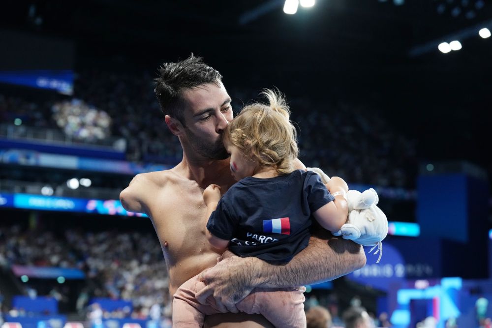 ↑男子50米蝶泳S6級銅牌獲得者、法國選手沙達爾在賽后親吻女兒。新華社記者 高靜 攝
