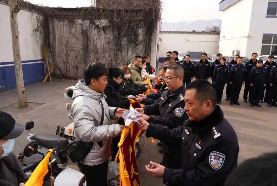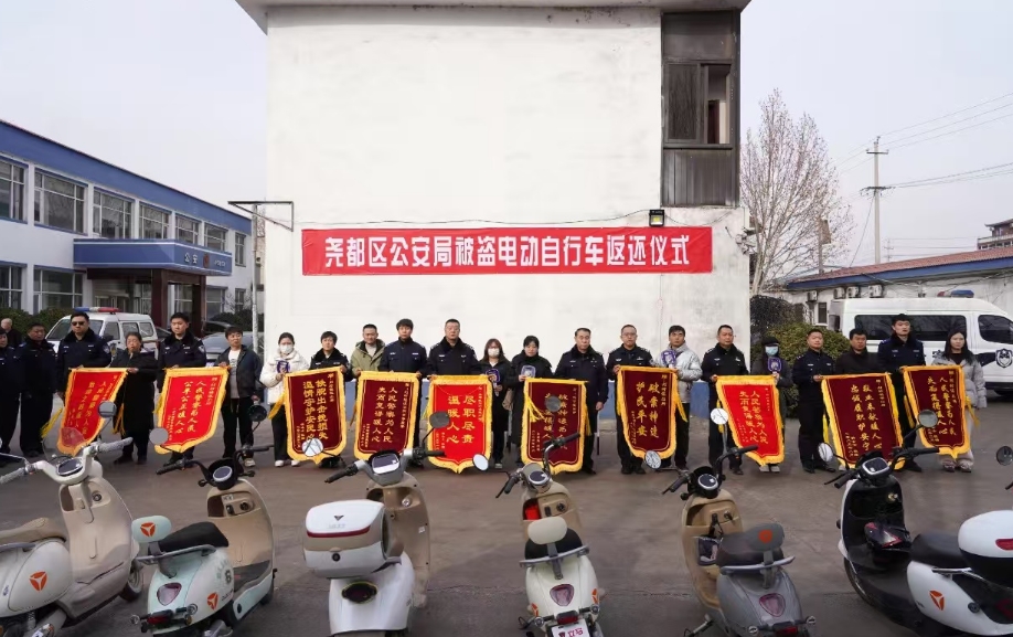在返還儀式現場,失主們從民警手中接過失而復得的電動車鑰匙,難掩喜悅之情,紛紛向民警送上錦旗,對公安機關迅速破案、及時挽回經濟損失表示由衷感謝。“接到電話說電動車找回來了,又驚又喜”“本以為找不回,警察太給力” 等話語,充分體現了群眾對堯都公安工作的認可。