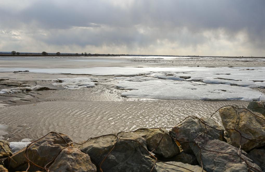 寬廣的河道內,河床中間的主水槽已經解凍,河水緩緩流淌,泛起粼粼波光;水面不時漂來大小、形狀不一的冰塊,它們相互撞擊,發出清脆的“刺啦”聲。河岸附近的河灘積冰有的由白變灰、冰層逐漸變薄。赤麻鴨等候鳥在冰面上悠閑踱步。仰頭偶爾能看到,十幾只天鵝排成人字形,緩緩飛過。