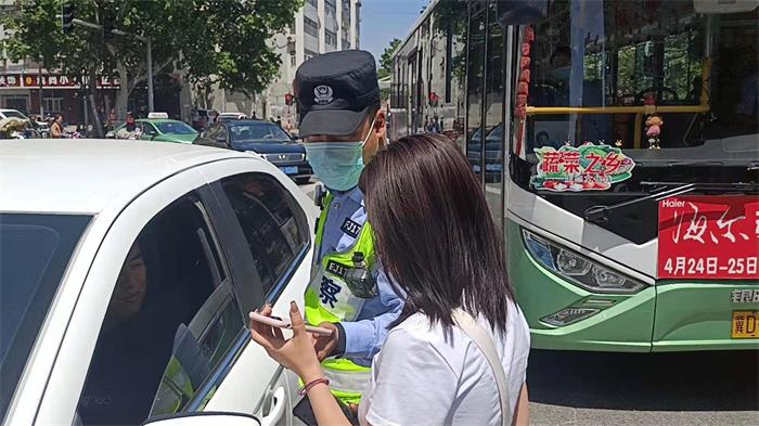 當天中午12時許,邯鄲市交巡警支隊邯山二大隊一中隊民警張強、杜飛、邰夢、李雪飛等人在邯鄲火車站路口執勤時,有兩名女子拎著行李氣喘吁吁地跑來求助,稱自己的手機掉在了一輛白色滴滴車上。經詢問了解得知,這兩名女子打滴滴到火車站去外地,準備下車時,其中一名女子不慎將手機落到所乘坐的滴滴車上。因為急需趕火車,手機又落在車上,該女子十分著急,無奈之下緊急跑向在火車站執勤站點,向執勤民警求助。