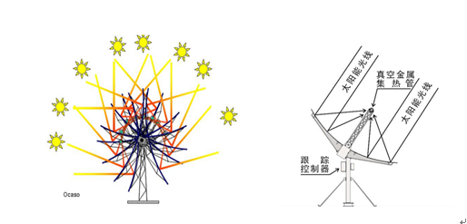 該項目采用國際領先的太陽能綜合利用技術,運用槽式集熱器核心技術系統,通過采用拋物面反射式聚光技術,通過單軸跟蹤系統,跟蹤太陽拋物面反射鏡匯聚太陽輻射光到真空集熱管上,真空管內部以導熱油為介質,將匯聚光轉化為熱能。采用導熱油做為介質時,能夠獲得180℃-240℃的中高溫,提高了集熱熱量的品質,能夠有效地用于制熱、制冷、制冰。突破性地將太陽能光熱技術大規模應用于旅游、體育、酒店服務產業,充分發揮光熱技術的經濟效益及社會效益。在滿足節能減排、減少大氣污染、有利環境保護的情況下供應項目冬季供熱及熱水的需求。能夠有效地緩解區域供熱行業的供求關系緊張、資源利用率較低和可再生能源利用不足等問題,極大減少煤炭等傳統資源供熱帶來的能源消耗和污染排放。