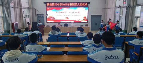 中原新聞網邯鄲訊(韓紅征 李軍廷)近日,邯鄲市涉縣第三中學團委舉行新團員入團儀式。學校黨總支委員張晶磊、團委成員、老團員代表和所有新團員共計60余人參加了儀式,儀式由學校團委書記王海苗同志主持。