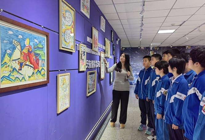 圖為該校美術老師劉子語為同學們講解邯鄲成語故事。