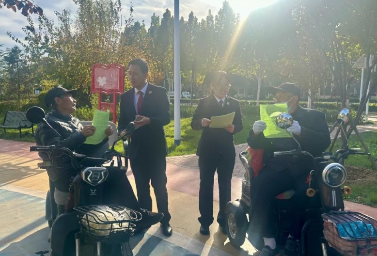 11月5日,雞澤縣檢察院組織干警到金雞游園、詩經文化園等多個公園開展養老反詐宣傳。