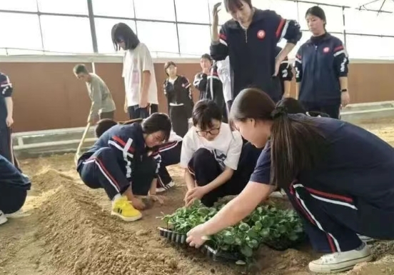 講座結(jié)束,學(xué)生們分組分工,有序領(lǐng)取鐵鍬、水桶、鋤頭等工具,迫不及待奔向農(nóng)田。大家有的挖坑,有的種苗,配合默契,現(xiàn)場(chǎng)滿是和諧溫馨。老師們也在一旁耐心指導(dǎo),傳授種植技巧和經(jīng)驗(yàn),學(xué)生們不僅學(xué)會(huì)栽種蔬菜,還掌握了蔬菜生長(zhǎng)過程和養(yǎng)護(hù)方法。
