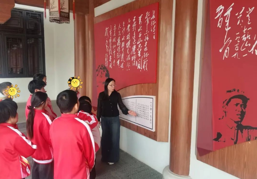 在毛氏宗祠,師生們開啟了豐富多彩的文化體驗(yàn)之旅。在東側(cè)抄廊,師生們欣賞到偉人毛澤東氣勢(shì)磅礴的詩作與酣暢淋漓的書法。在老師引導(dǎo)下,同學(xué)們大聲齊誦《七律·長(zhǎng)征》和《沁園春·長(zhǎng)沙》。激昂的詩句讓孩子們深刻領(lǐng)略到紅色文化的強(qiáng)大力量,在心中種下積極面對(duì)生活的種子。