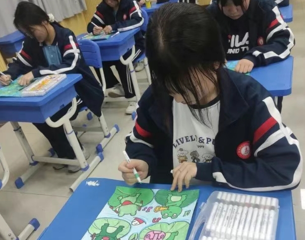 比賽內(nèi)容圍繞“荷塘蛙樂”主題展開,旨在引導小班幼兒認識夏季。參賽學生在90分鐘的限時創(chuàng)作中,運用安全無毒的材料,盡情發(fā)揮想象力與創(chuàng)造力。賽場上,參賽者們聚精會神,低頭勾勒,展現(xiàn)出未來幼師最美的風采。