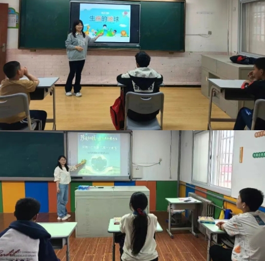 活動(dòng)中,各班教師精心準(zhǔn)備,開(kāi)展了“世界地球日”主題班會(huì)。老師們用生動(dòng)形象的圖片、視頻,向孩子們介紹地球的生態(tài)環(huán)境,講解森林砍伐、水資源污染、垃圾堆積等問(wèn)題對(duì)地球造成的危害。在互動(dòng)環(huán)節(jié),孩子們積極發(fā)言,分享自己知道的環(huán)保小知識(shí),“出門(mén)要關(guān)燈”“不能亂扔垃圾”……盡管學(xué)生們表達(dá)能力有限,但從他們簡(jiǎn)單的話(huà)語(yǔ)和急切的神情中,能真切感受到環(huán)保意識(shí)的種子已悄然種下,喚醒了他們守護(hù)地球的初心 。