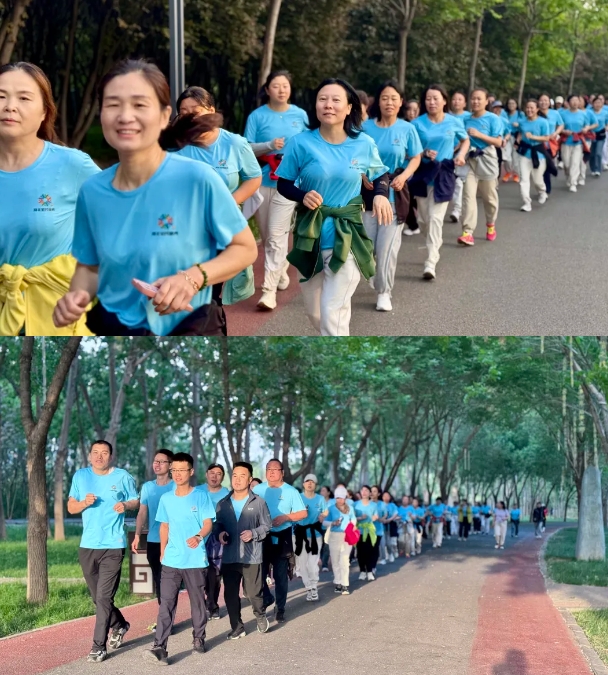 活動(dòng)開始前,校領(lǐng)導(dǎo)著重強(qiáng)調(diào)了全民健身的重要意義,鼓勵(lì)老師們?cè)诮〔阶哌^程中釋放工作壓力、強(qiáng)健自身體魄,以更好的狀態(tài)投入到教育事業(yè)中。隨著出發(fā)令清脆響起,教職工們身著整齊統(tǒng)一的服裝,排列成整齊的隊(duì)伍,邁著矯健有力的步伐從公園北門列隊(duì)出發(fā)。行進(jìn)途中,道路兩旁綠樹成蔭,花草繁盛,清新的空氣彌漫在四周。老師們一邊感受著大自然的美好,一邊盡情享受著運(yùn)動(dòng)帶來(lái)的快樂,每個(gè)人的臉上都洋溢著幸福與喜悅。行進(jìn)途中,大家有的交流著日常教學(xué)中的趣事,有的不斷抓拍,有的互相鼓勵(lì),展現(xiàn)出學(xué)校教職工團(tuán)結(jié)一心的良好精神風(fēng)貌。