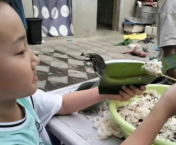 在家人的幫助和指導下,二年級的孩子們通過包粽子、編五彩繩、做香囊等多種方式,加上自己豐富的想象力與動手的能力,在勞動實踐中傳承端午節日習俗。