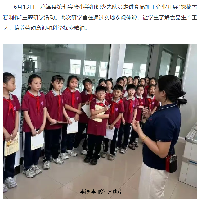 雞澤縣第七實驗小學開展"探秘雪糕工廠"研學實踐活動