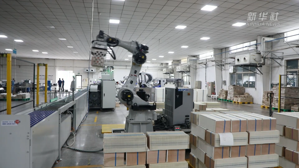 無(wú)人車(chē)在車(chē)間穿梭、機(jī)械手自動(dòng)喂書(shū),在淄博市桓臺(tái)縣的山東韻杰文化科技有限公司,印刷車(chē)間里只有幾名工人在操作數(shù)字化生產(chǎn)設(shè)備。