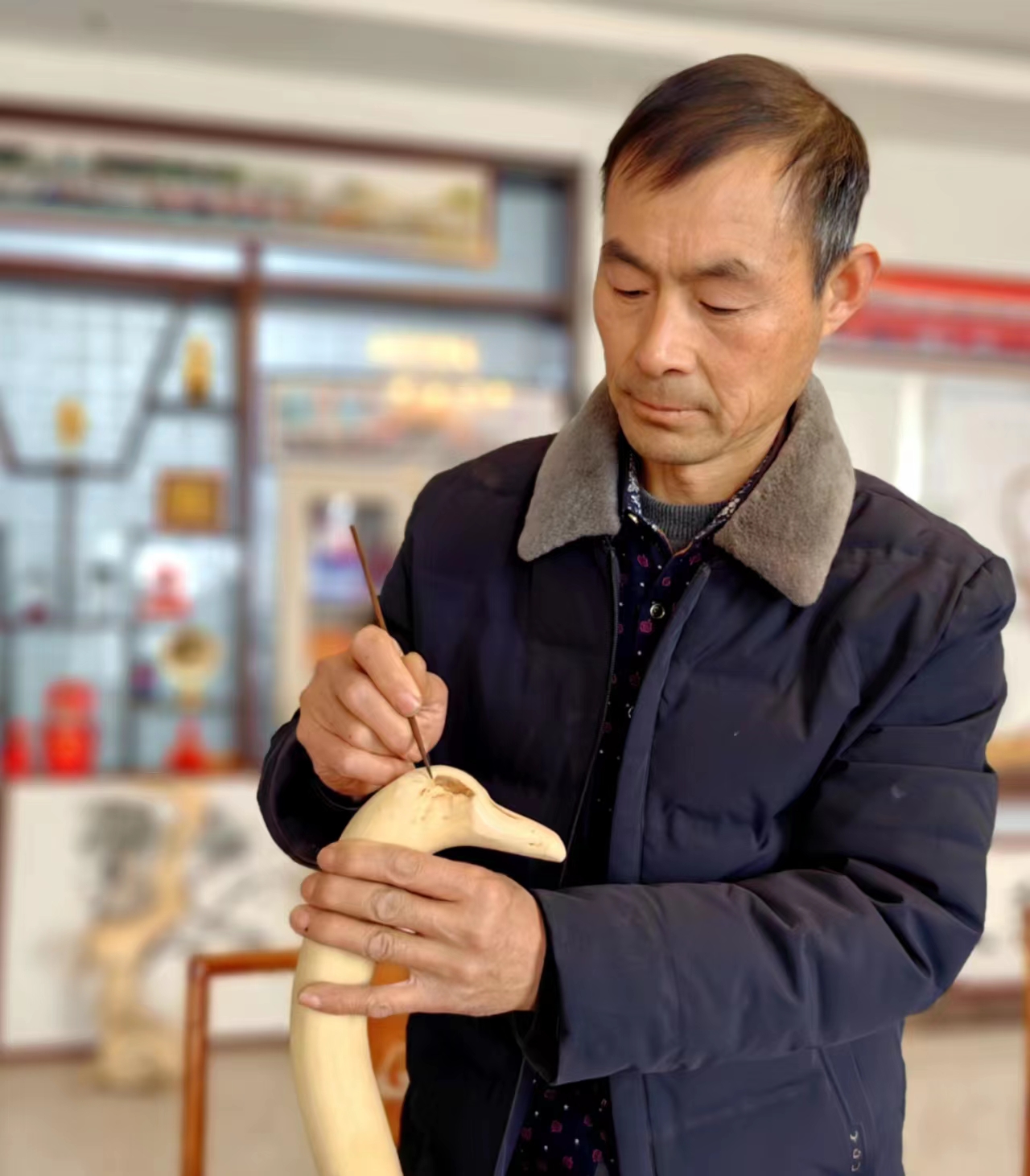 中原新聞網商丘訊(李聯合)河南省商丘市虞城縣劉店鄉葉趙莊村村民姜雨喜愛根雕藝術,已堅持創作根雕30余年。他通過根的自然形態構思立意,雕鑿加工和工藝處理,創作出人物、動物等形象,先后做成了近100件根雕作品,把大自然的樹根與傳統木雕相結合的工藝美術展現得淋漓盡致。姜雨利用這些根雕作品建成了根雕藝術館,免費供人們觀賞。