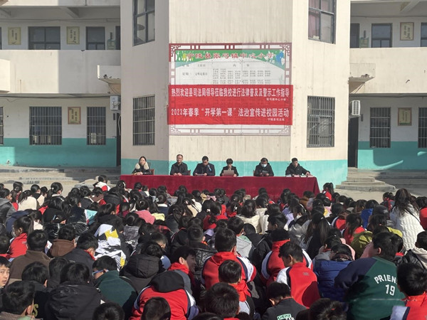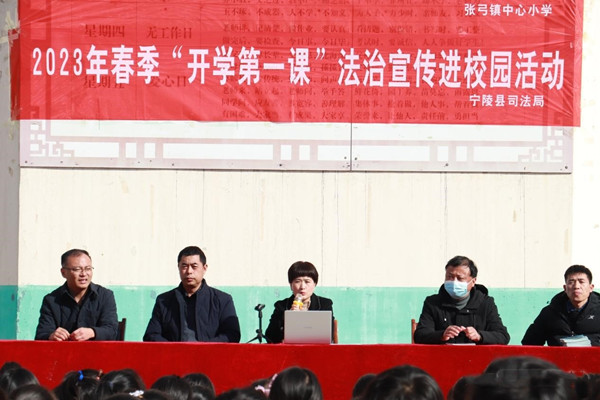 為深入學習貫徹習近平法治思想,進一步做好校園普法宣傳教育工作,豐富學生的法律知識,提高自我保護能力,增強學生的法律觀念,預防和減少未成年人違法犯罪,為青少年的健康成長營造良好的法治環境,2月20日上午,寧陵縣司法局到張弓鎮中心小學開展“開學第一課”法治宣傳進校園活動。
