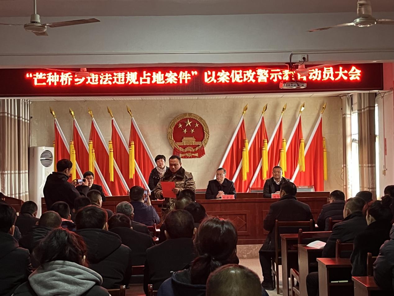 中原新聞網商丘訊(蔣華山 金菲)為吸取深刻教訓、舉一反三、自查自糾、抓好整改,用案例警醒自身,進一步筑牢信仰之基、繃緊紀律之弦、落實應盡之責,培育良好的政治生態和政治環境。2月23日,虞城縣芒種橋鄉召開“芒種橋鄉違法違規占地案件”以案促改警示教育動員大會。縣派工作組全體成員,芒種橋鄉全體鄉干部,各村支部書記參加會議。會議由虞城縣人大常委會副主任、縣派工作組組長田愛玲主持,縣紀委副書記、監委副主任劉法啟同志出席會議并做重要講話、縣紀委審理室主任王軍鋒同志出席會議。
