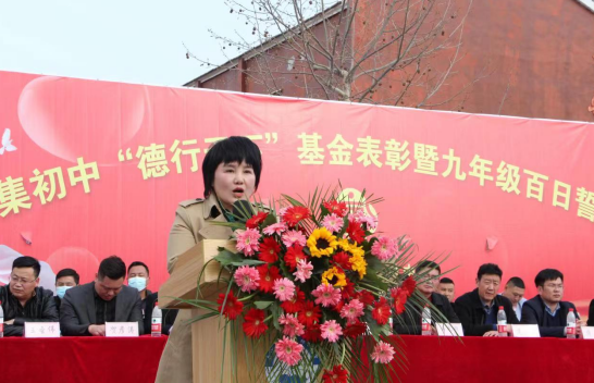 虞城縣教體局副局長(zhǎng)高文華代表虞城縣教體局為本次盛典致賀辭,對(duì)沙集初中“德”基金周年活動(dòng)的隆重舉行表示熱烈的祝賀!向一直關(guān)心和支持基金會(huì)的各位校友、愛(ài)心人士表示誠(chéng)摯的慰問(wèn)和衷心的感謝!