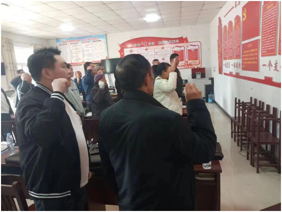 會(huì)議中,首先由村支部書記畢遠(yuǎn)鋒主持下,魏堌堆村27名黨員面對(duì)黨旗,進(jìn)行集中宣誓。畢遠(yuǎn)鋒結(jié)合主題黨日活動(dòng)的要求,入黨誓詞80字,講解政策內(nèi)涵,談體會(huì),話分享。緊接著,畢遠(yuǎn)鋒帶領(lǐng)大家學(xué)習(xí)了黨的二十大精神。村黨支部副書記惠治臣對(duì)農(nóng)村黨員如何在農(nóng)村建設(shè)中發(fā)揮作用,如何推進(jìn)“五星”支部創(chuàng)建工作進(jìn)行了講解。作為農(nóng)村黨員要充分發(fā)揮正能量作用,在處理村級(jí)事務(wù)方面、在化解矛盾糾紛、帶領(lǐng)群眾致富等方面發(fā)揮模范帶頭作用。之后,全體黨員各自談了自己的認(rèn)識(shí)和體會(huì)。
