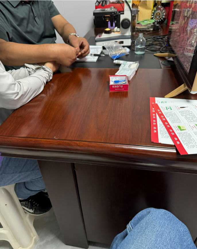 被“一滴血檢測(cè)健康”吸引來(lái)的,還有家住江蘇鹽城的劉華(化名)。最近幾年劉華正處于更年期,睡眠一直不好,自己的一個(gè)小姐妹給她介紹了伍福家園的產(chǎn)品,并表示這跟其他產(chǎn)品不一樣,是食療。2024年9月,劉華和親戚驅(qū)車(chē)來(lái)到位于無(wú)錫市惠山區(qū)陽(yáng)山鎮(zhèn)的一處公寓內(nèi),這里是伍福家園的一個(gè)“站點(diǎn)”。“里面有一位‘孫老師’是這次活動(dòng)的主要執(zhí)行者,由他本人進(jìn)行一滴血檢測(cè)”,一同前去的劉華的女兒鄒瑜(化名)告訴記者,這位“孫老師”自稱(chēng)為當(dāng)?shù)啬持嗅t(yī)院專(zhuān)科醫(yī)生,由他進(jìn)行診斷,并開(kāi)具方案。