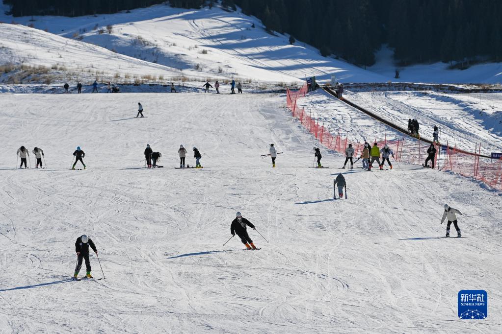 1月27日,滑雪愛好者在新疆特克斯縣喀拉峻滑雪場滑雪。新華社記者丁磊攝
