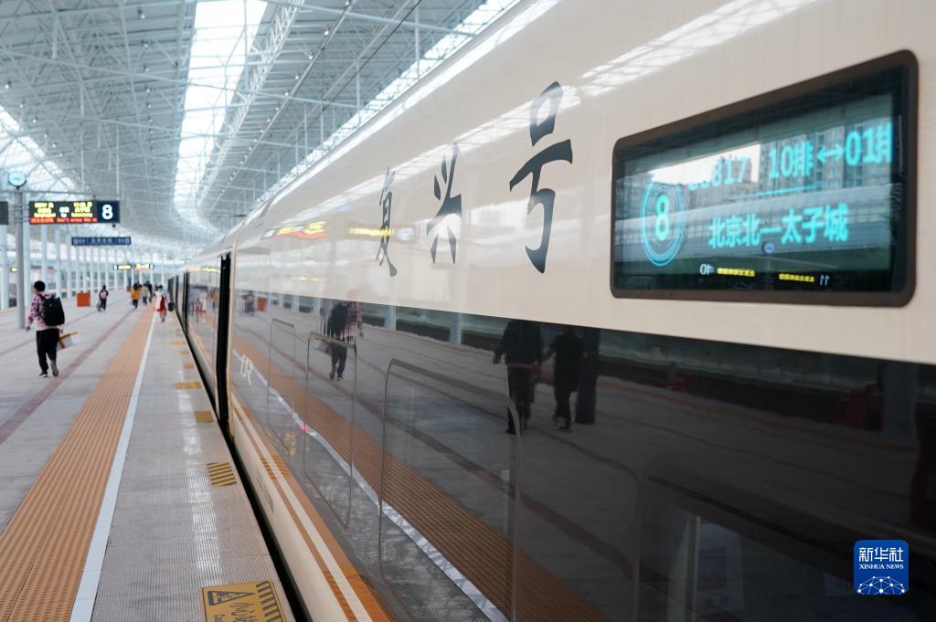 2020年9月25日,前往太子城站的高鐵列車在北京北站準備發車,它連接著2022年北京冬奧會的兩大舉辦地北京和張家口。新華社記者張晨霖攝