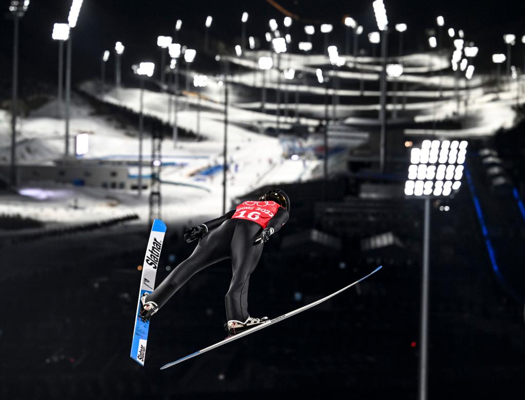 國(guó)家跳臺(tái)滑雪中心是當(dāng)今世界上體量最大的跳臺(tái)滑雪場(chǎng)館,由頂層回廊、競(jìng)賽區(qū)、看臺(tái)區(qū)組成。“雪如意”的整體景觀令斯特拉特印象深刻,“當(dāng)我們?cè)诔霭l(fā)點(diǎn)熱身的時(shí)候,從山上俯視整個(gè)場(chǎng)館和周邊的景色,令人心曠神怡。”