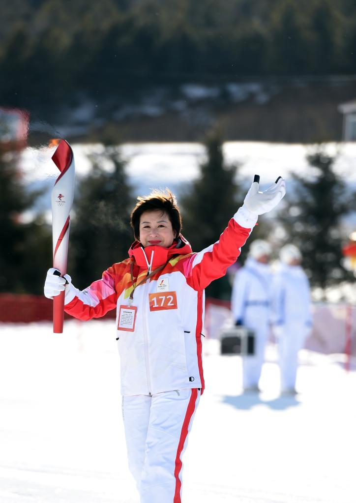 2月3日,北京冬奧會火炬在河北張家口崇禮富龍滑雪場傳遞,火炬手郭丹丹在火炬傳遞中。新華社記者駱學峰攝