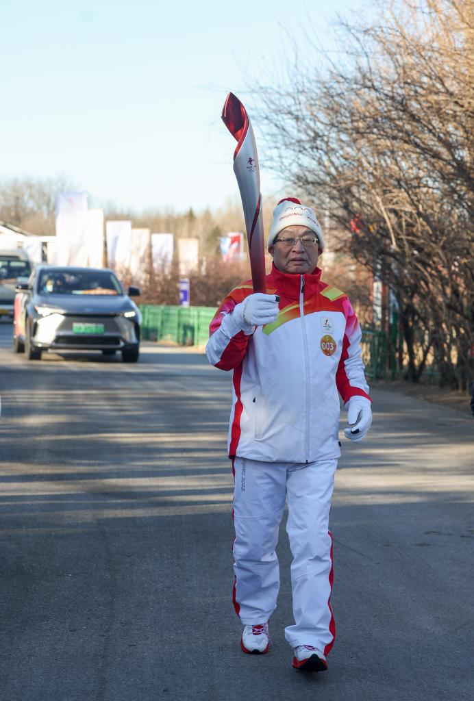 2月2日,北京冬奧會火炬在北京奧林匹克森林公園傳遞,火炬手葉培建在火炬傳遞中。新華社記者賈浩成攝