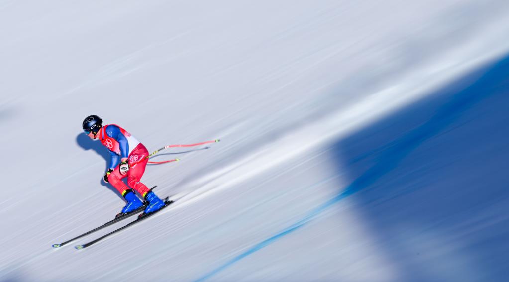 2月3日,中國(guó)選手徐銘甫在北京冬奧會(huì)高山滑雪男子滑降項(xiàng)目第一次訓(xùn)練中。新華社記者陳斌攝