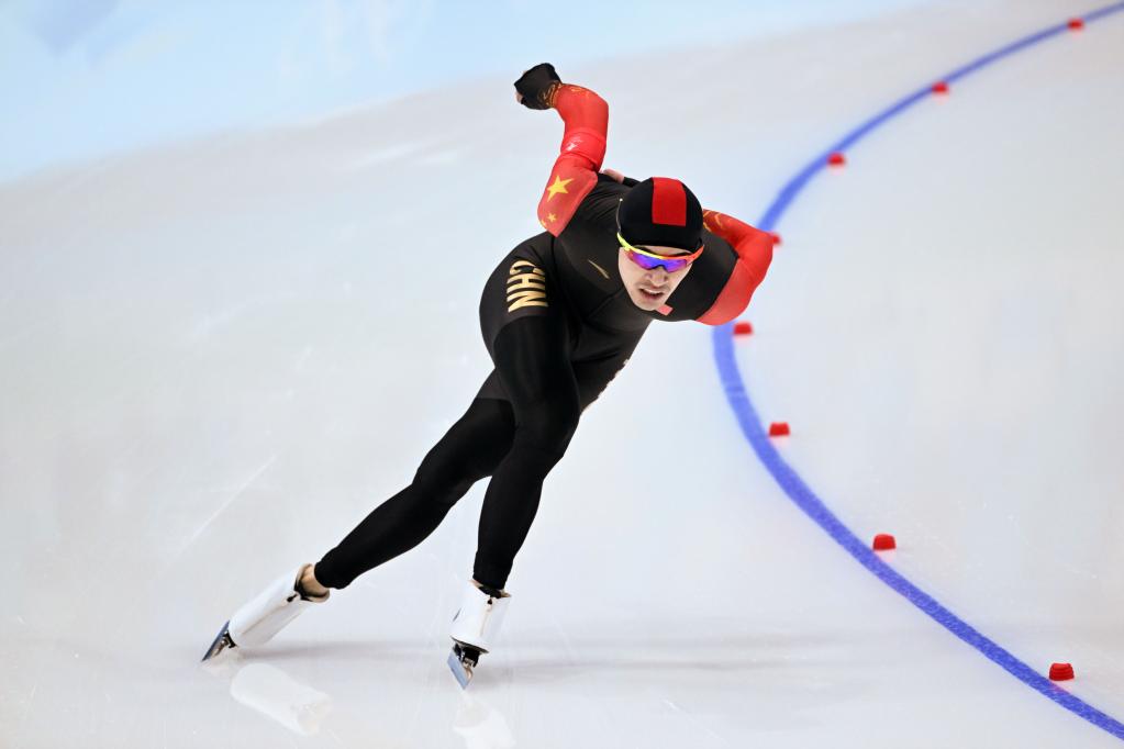 2月8日,中國(guó)隊(duì)選手寧忠?guī)r在北京冬奧會(huì)速度滑冰男子1500米決賽中。新華社記者王建威攝