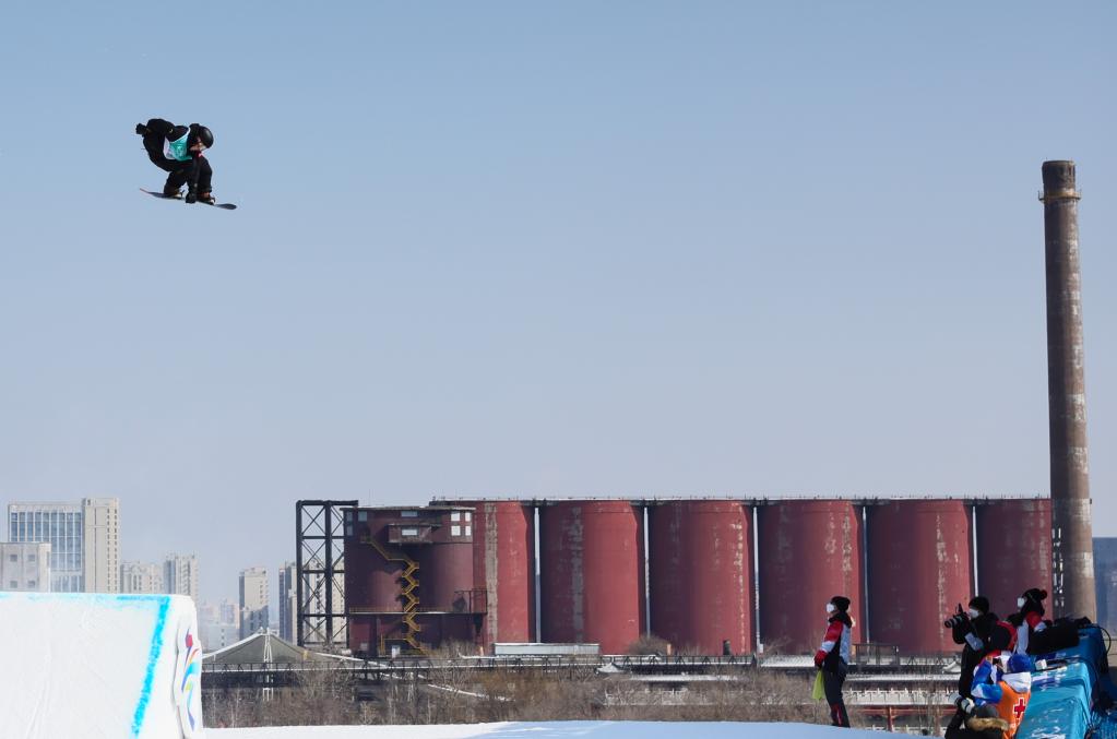2月15日,蘇翊鳴在單板滑雪男子大跳臺比賽中。新華社記者蘭紅光攝