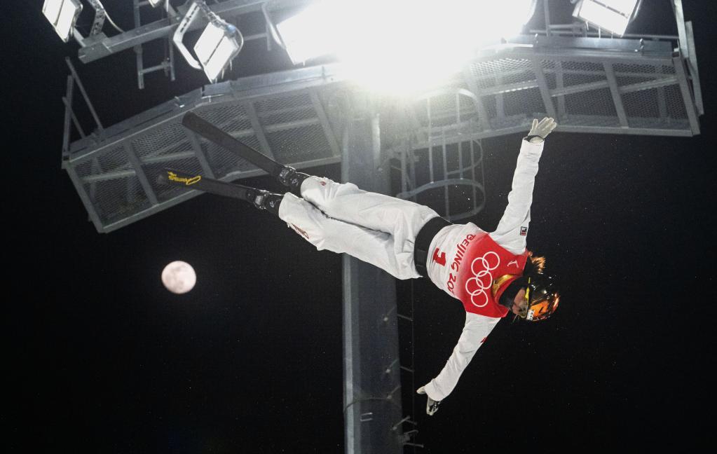 2月16日,中國隊選手齊廣璞在自由式滑雪男子空中技巧決賽中。新華社記者朱崢攝