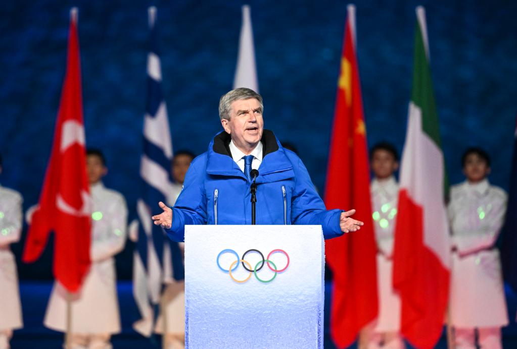 2月20日晚,北京第二十四屆冬季奧林匹克運動會閉幕式在國家體育場舉行。這是國際奧委會主席巴赫致辭。新華社記者李尕攝