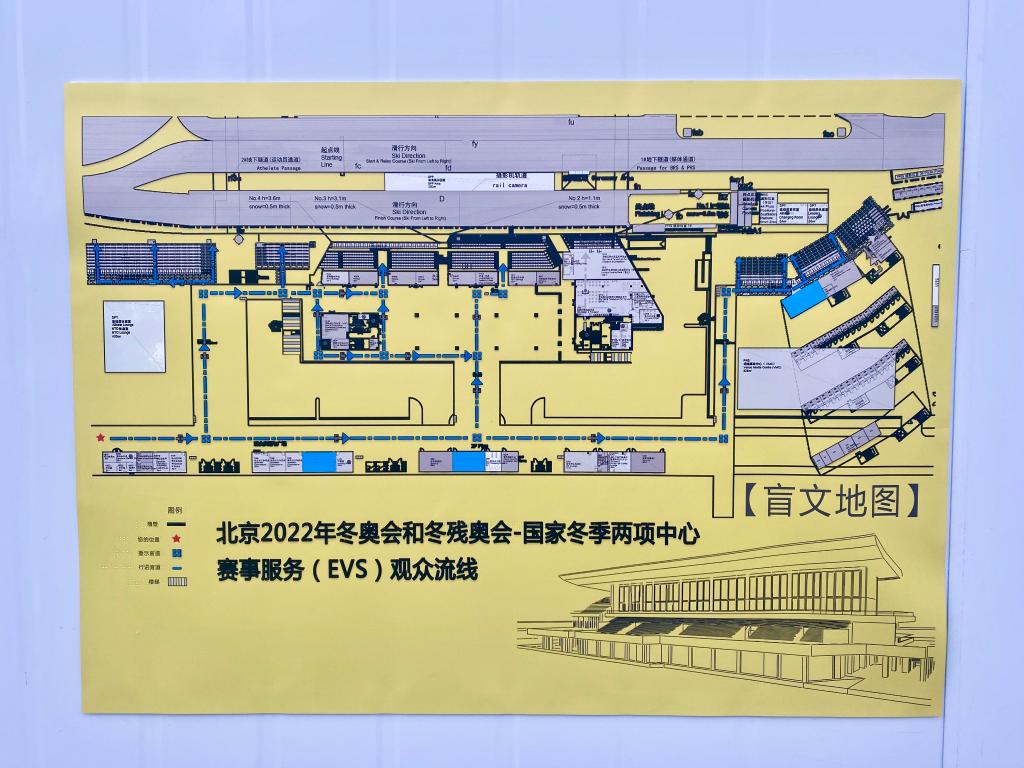 在張家口賽區國家冬季兩項中心,這里將承辦殘奧越野滑雪、殘奧冬季兩項兩個大項的比賽。冬季兩項有視障組運動員參加比賽,場館準備了盲文閱讀材料、可觸摸式盲文地圖,為視障人士提供信息無障礙服務,方便他們了解場館及競賽相關信息。