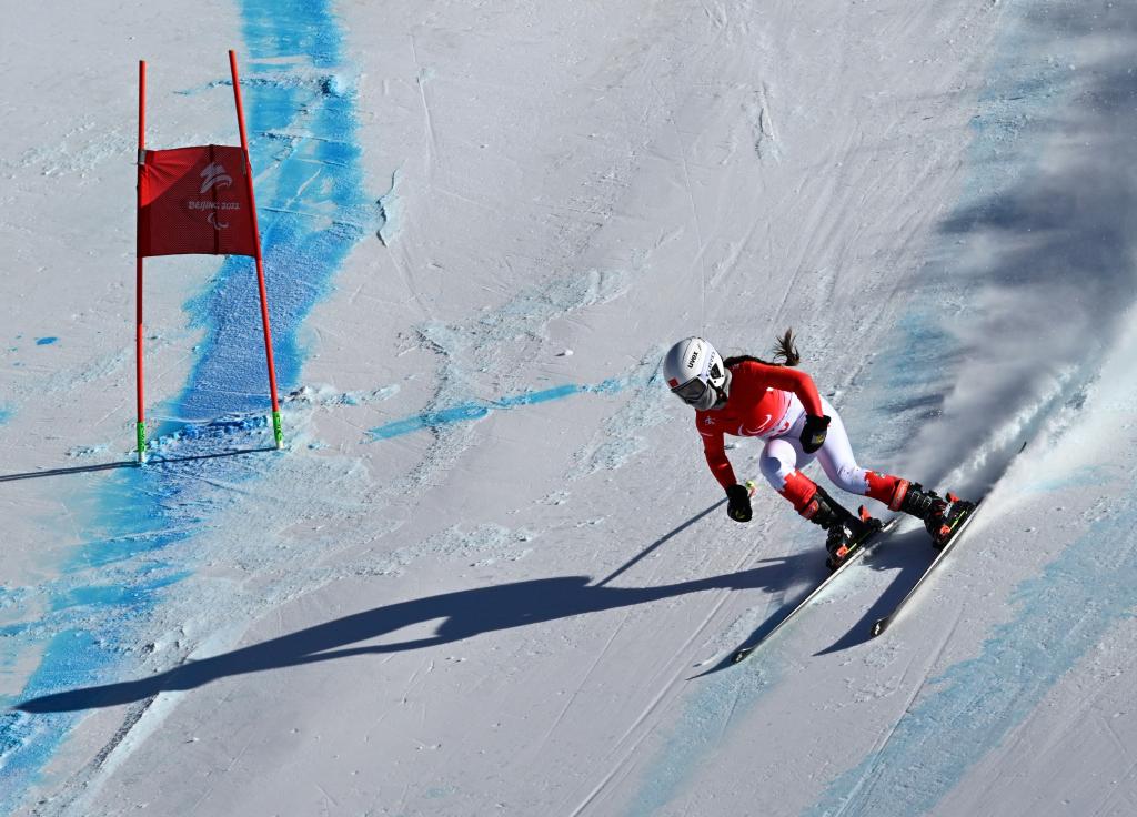 3月7日,中國選手張夢秋在高山滑雪女子全能(站姿)比賽中獲得亞軍。新華社記者張晨霖攝