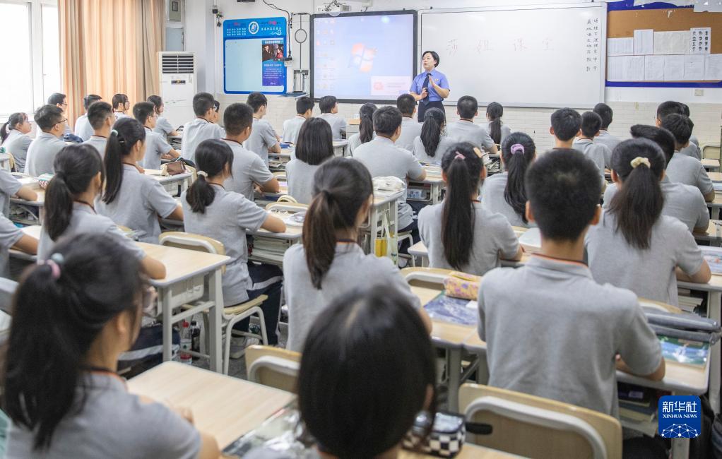 9月20日,在重慶市第三十七中學(xué),梅玫與學(xué)生在課間交流。新華社記者 黃偉 攝