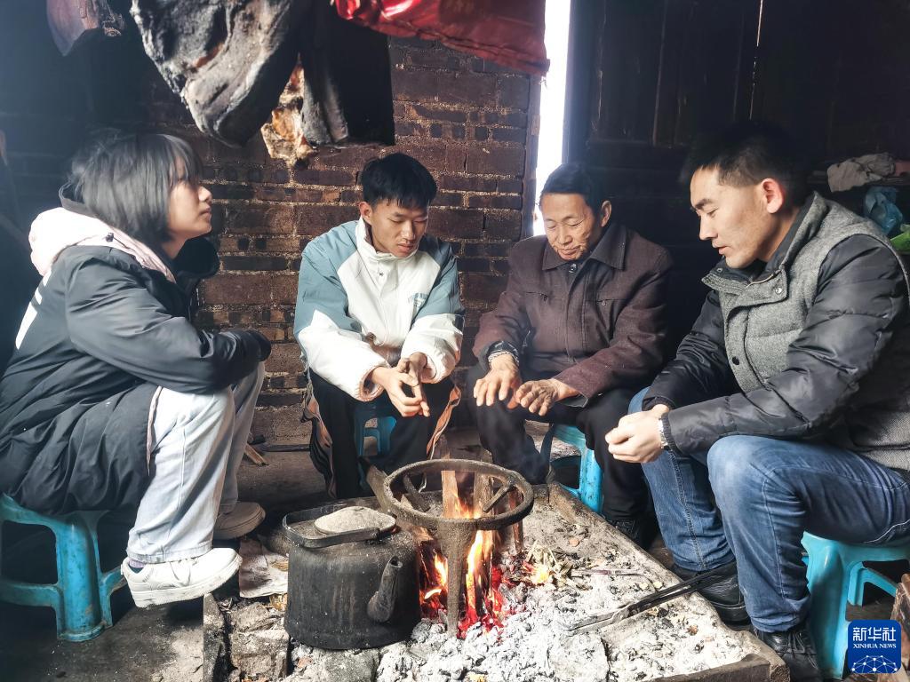 貴州省望謨縣實驗高中黨總支副書記、副校長劉秀祥(右一)在學生家中家訪(2022年2月1日攝)。新華社發