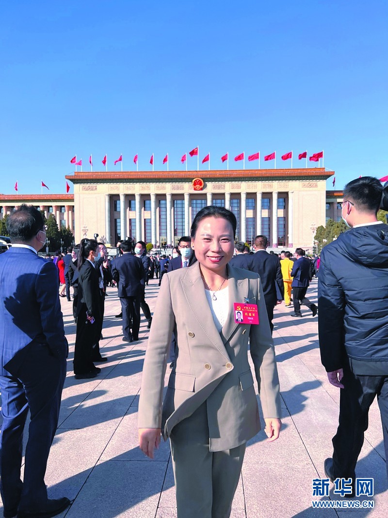 10月16日,周國花在人民大會堂外留影。新華網發 受訪者供圖