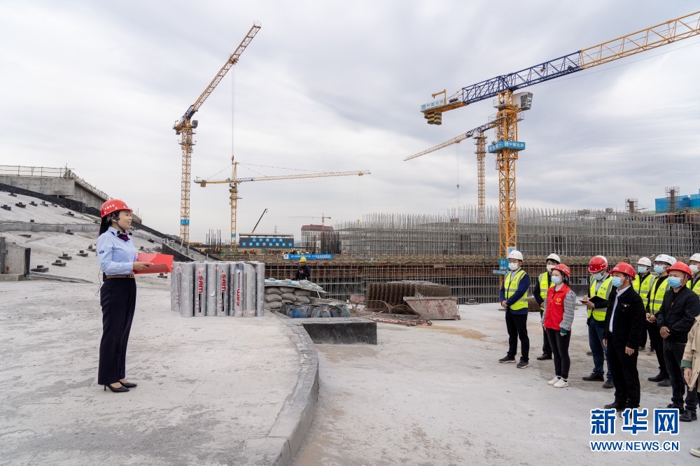 10月26日,周國花走進杭衢高鐵衢州西站綜合交通樞紐項目現場。新華網發 劉蕓攝