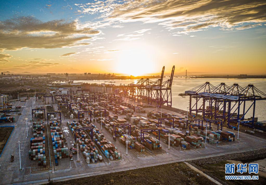 這是5月26日在海南洋浦經濟開發區拍攝的洋浦國際集裝箱碼頭(無人機照片)。新華社記者 蒲曉旭 攝