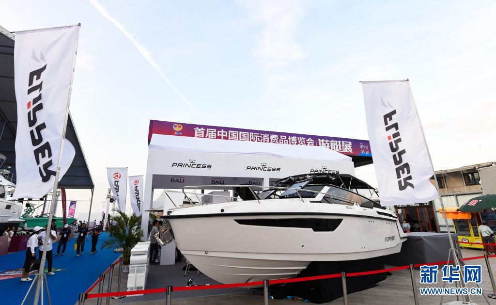 這是首屆消博會游艇展上展出的游艇(5月7日攝)。新華社記者 楊冠宇 攝