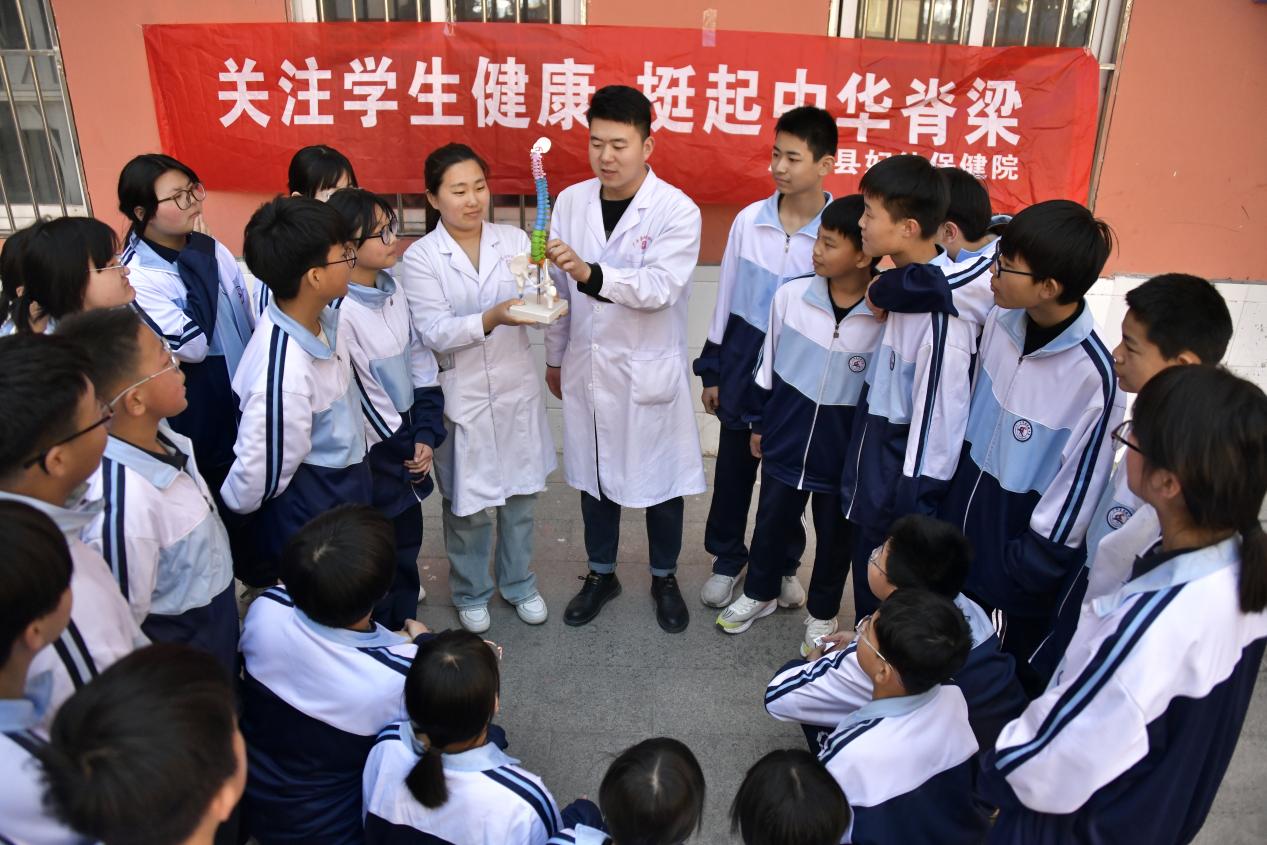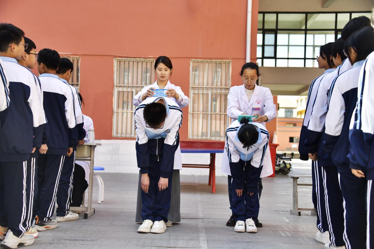 4月2日,河北邯鄲市廣平縣婦幼保健院組織醫護人員走進該縣實驗中學,為2216名學生開展脊柱側彎篩查,并進行健康知識宣講,要求學生保持良好的坐姿和站姿,加強體育鍛煉。
