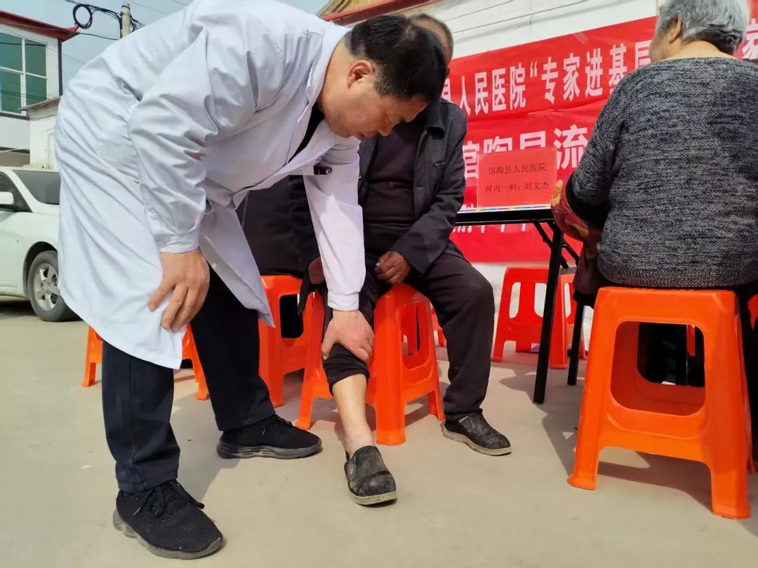 活動現場,醫護志愿者為村民提供了血壓血糖測量、心肺聽診、中醫把脈問診等多項健康檢查服務,并針對常見病、慢性病進行專業指導。神經內一科主任劉文杰耐心解答村民關于腦血管疾病的預防問題,中醫科主任史紀增通過望聞問切為村民開具調理處方,神經外科副主任張善輝則針對頭痛、眩暈等癥狀提供診療建議。