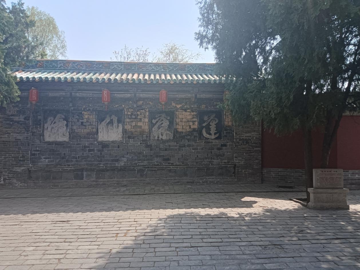 首先映入眼簾的是那高大的琉璃照壁,它宛如一位沉默的衛士,靜靜守護著這座古老的道觀。陽光灑在琉璃上,折射出五彩的光芒,仿佛在訴說著往昔的輝煌。大門上 “邯鄲古觀” 四個大字蒼勁有力,歲月的侵蝕并未掩蓋其神韻,反而增添了幾分古樸的質感。走進大門,前院的照壁上 “蓬萊仙境” 四個草書石刻龍飛鳳舞,相傳為呂洞賓親筆所書,雖歷經風雨,卻依然靈動飄逸,仿佛蘊含著仙人的靈氣,讓人不禁對這座道觀多了一份敬畏與遐想。