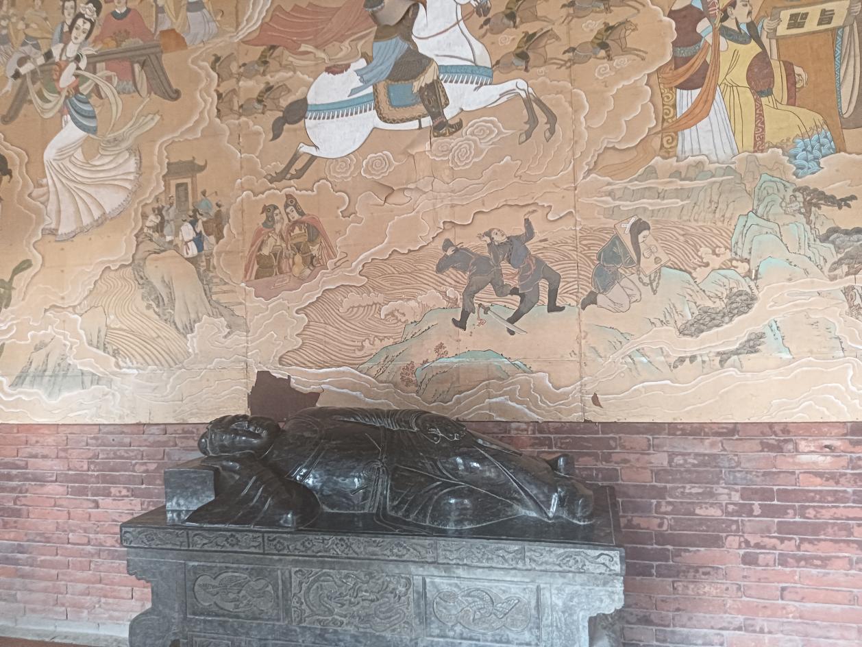而盧生殿,則是整個呂仙祠的核心所在,這里供奉著盧生的青石臥像。盧生像大小與真人相仿,呈側身臥姿,雙腿微曲,雙目緊閉,嘴角上翹,神態安寧,仿佛依然沉浸在那場黃粱美夢中。看著盧生的睡像,我的思緒不禁飄回到了那個遙遠的故事:盧生在邯鄲的旅途中,遇到了呂洞賓,呂洞賓送給他一個瓷枕,盧生枕著它入睡,夢中經歷了一生的榮華富貴,醒來時,店主人煮的黃粱飯還未熟。這個故事,千百年來被人們傳頌,成為了 “黃粱美夢” 的典故,也讓這座呂仙祠充滿了神秘的色彩。
